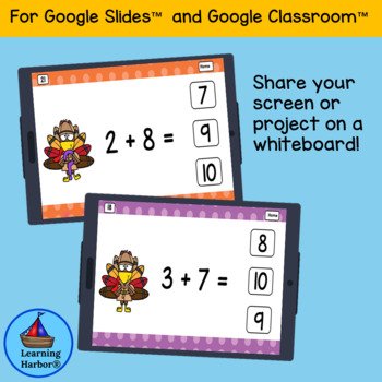 Add To10 Digital Thanksgiving Game Show for Kindergarten and First Grade
