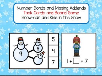 This set of Number Bonds and Missing Addends within 10 Snowman and Winter Kids Theme Task Cards is designed for Kindergarten, First and Second Grade teachers who appreciate reliable, durable materials that can be used year after year. Each card features crisp winter graphics snowflakes or kids on ice skates that help capture students’ attention without distracting from the core math skill. The familiar, friendly theme helps young learners stay engaged, especially during the busy winter months when structure and predictability make all the difference.