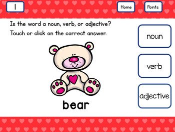 • Sorting Nouns, Verbs and Adjectives Valentine Theme Grade 2